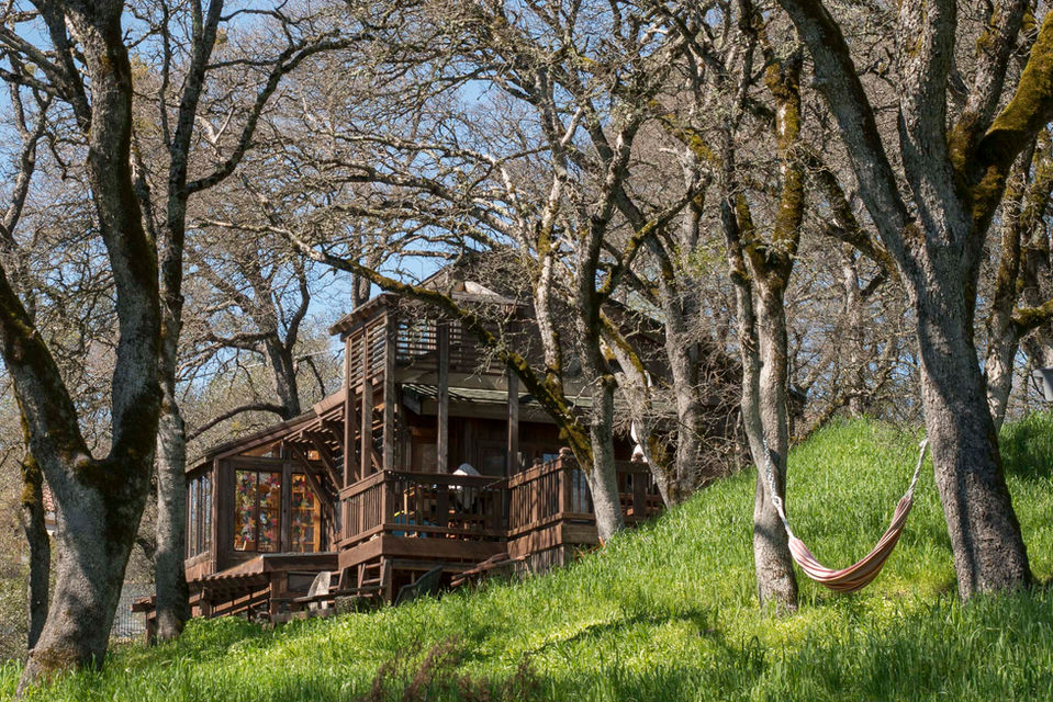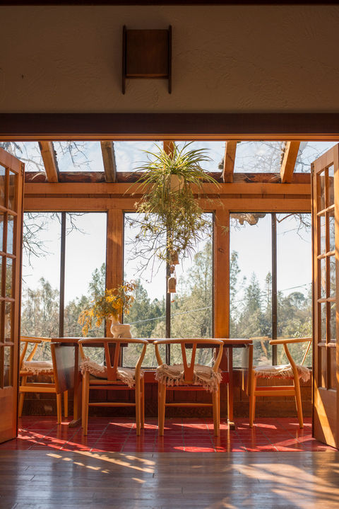 To get to country singer and vintage dealer Molly Leary’s unique rural oasis, you drive towards the serene mountain vistas of California’s historic Gold Country. Perfectly perched on a grassy hillside, it overlooks a quiet canyon. The mostly redwood house was built in 1978 and is famed as being one of the first passive solar homes in California.